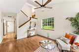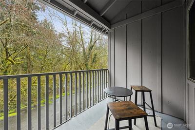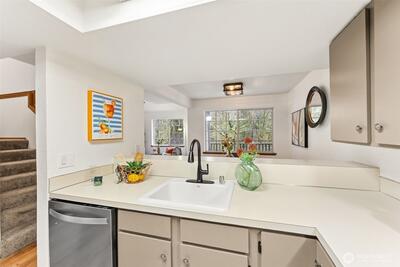 Serene, turn-key, two-story corner condo with 2 large bedrooms, den, and 1.5 baths PLUS single attached garage with huge storage spaces — private sleeping areas upstairs, ideal entertaining space downstairs. Open-kitchen bar! Flexible den works as an office, guest room, or hobby space. Full size laundry room. Huge one-car garage with storage plus an additional private parking spot right along side it included, (fits an oversized work van). Did I mention all the additional storage space? 3 different storage areas in addition to the garage. Quiet building with only 4 units in this footprint, backing to firs, cedars, and a peek-a-boo creek; enjoy large windows looking into our typical, beautiful PNW green space (you don’t see a single neighbor, so private!), the back patio and peaceful ambiance with deer and evening frog song. Convenient Olympia location — top schools, restaurants, golf, groceries, and easy access to I-5 and Yelm Hwy. Less than an hour to SeaTac and less than 2 hour