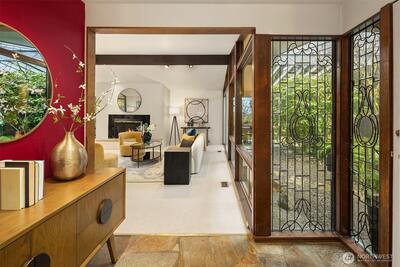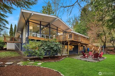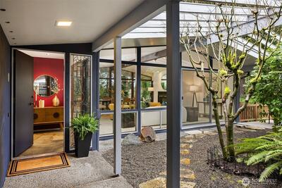 Mid-century gem in Mercer Island’s coveted north end. Enter through a beautifully landscaped courtyard into a living room w/ vaulted ceilings & walls of windows full of natural light. A spacious kitchen w/ multiple outdoor decks create seamless indoor-outdoor living, ideal for entertaining. The light & bright main level features hardwood floors & three bedrooms including a primary suite w/ en-suite bath. The spacious lower-level walk-out offers a large recreation room w/ wood-burning fireplace, a large 4th bedroom & newly remodeled bath, and expansive flex space - perfect for guests, work, or play. Tucked at the end of a quiet cul-de-sac in Mercerwood Estates on an oversized lot with level back play yard, this home is just minutes from top-rated schools, JCC, Mercerwood Shore Club, parks, shopping, and easy I-90 access. A rare combination of timeless design, comfort, and location.