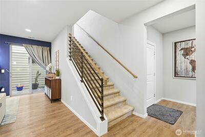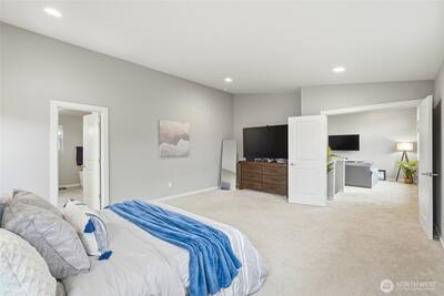 Welcome to this beautifully designed 4-bedroom home in the sought-after Ten Trails community in Black Diamond! With 2,657 sq ft of thoughtfully planned living space, this home offers versatility, comfort, and modern convenience. The main level features a spacious office with an adjoining shower-perfect for multi-generational living, guests, or a private workspace. The open-concept layout seamlessly connects the kitchen, dining, and living areas, ideal for entertaining and everyday living. A functional mudroom off the 2-car garage adds convenience and organization. HOA provides premium 1G internet and front-yard maintenance. Upstairs, you’ll find a large primary suite retreat, a spacious loft, and an upstairs laundry room complete with a utility sink. This home has been pre-inspected, giving buyers added confidence and peace of mind. Step outside and enjoy a large shared green space with a fire pit-perfect for gatherings and a safe place for play without worrying about street traffi