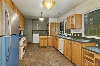 Opportunity knocks. Spacious 3Br/1.75Ba fixer sited on a level 30,509 sqft lot offers many possibilities. 1) Tear down and redevelop as multiple units site by maximizing recently enacted HB-1110 allowing for greater density. 2) Restore this mid-century modern to its original splendor and enjoy the tranquility and privacy this huge property offers. 3) Acquire and update as rental for income now and reap future appreciations. 4) Build additional dwellings while keeping the current home intact. Options aplenty. This 1,920 sqft rambler features large picture windows in living room, sizable kitchen with view of the expansive garden, enormous family room with French doors open to patio, 2-car attached carport, abundance of off-street and RV parking. Convenient Scenic Hill location. Minutes to shopping, freeway access, ShoWare Center and Kent Station. Property is on Kent city sewer and water further enhance its developability. Do not miss your chance to secure this prime corner property in a