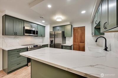 This Fully updated ground floor Urban retreat at the Totem Lake/North Rose Hill border! This recently updated, private entry, end unit condo offers an open-concept, light-filled living space. The kitchen flows to dining and a private patio. The spacious primary suite features a generous walk-in closet and an ensuite with a private sauna—your personal spa. A separate laundry room has updated built-in storage. Includes a covered carport and private storage locker. Enjoy easy walking access to the vibrant Totem Lake Village shops/restaurants and immediate connections to nature on the Eastrail Trail and Cross-Kirkland Corridor. This 2-bed, 1.75-bath home perfectly balances city convenience with tranquil living.