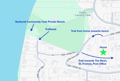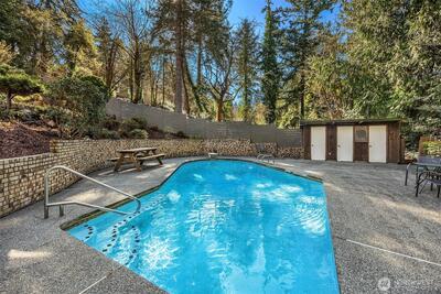 Endless weekend days at your singular Seahurst Estate. The only home in Seahurst with a pool (buyer to verify), this secluded estate also includes a detached studio, full detached gym, detached 2 car garage and separate parking area for boats/RVs. This lot is over one acre in size, but your property feels limitless; greenbelts border both N and S sides of home and both greenbelts have community trails to your Seahurst Community Club beach. Home is a two story + basement (3 floors). Three beds including primary suite on 2nd story, additional bedroom in basement (4 total + studio). Enjoy real hardwood floors, new paint throughout, updated bathrooms, updated fixtures and don't miss historic-feeling custom artwork in the true living room. It will be nearly impossible to find other homes in 98166 where your loved ones and pets have this much freedom to run, play and make priceless memories. This property feels like a vacation from real life, a place to both play and rest endlessly in this t