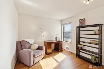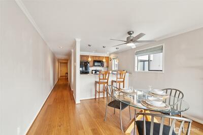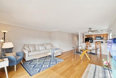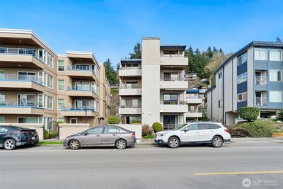 Don't miss your chance to own this pristine 2 BR condo on Beach Drive! Enjoy fresh salt air, stunning sunsets, & breathtaking Olympic Mountain views from your private balcony. Just blocks away from beach access, the beloved La Rustica, & Alki Beach's cafés & restaurants. This charming, boutique building boasts only 11 units, offering a sense of privacy & tranquility. Inside, you'll find an open-concept living space, seamlessly blending the living, dining, & kitchen areas w/ a convenient breakfast bar. The updated 3/4 bathroom & bamboo floors add a touch of elegance throughout. Plus, you'll have 2 parking spots to make coming & going a breeze. Live your beachside dream at an unbeatable price!