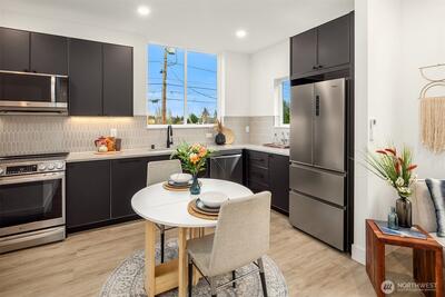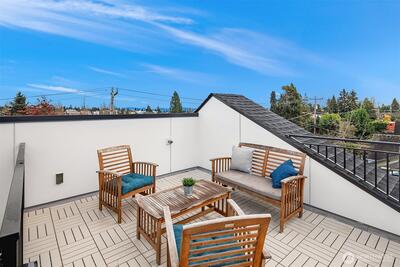 Welcome to this new construction home from Insignia Development in a fantastic Northwest Seattle location. Spacious entryway leads to first floor bedroom or home office and full guest bath. Second level has open concept living room and kitchen for ease of entertaining. Top floor primary, with spacious ensuite bath and walk-in closet, offers complete privacy from the rest of the home. Enjoy morning coffee or watch the sun go down on your rooftop deck with territorial views, giving you low-maintenance access to the outdoors. Greenwood and Crown Hill neighborhoods with ample options for dining & night life, plus Met Market blocks away. Attached storage garage for all of your gear, and EV-ready off-street parking included.