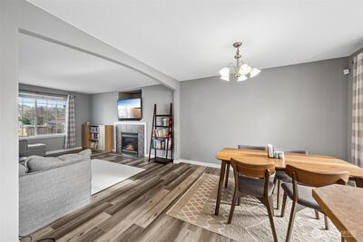 Beautifully maintained home in the desirable Stonerise community! Step inside to a bright and inviting formal living room featuring a cozy gas-burning fireplace—perfect for relaxing evenings. The main level showcases durable LVP flooring throughout, offering both style and easy maintenance. The light-filled kitchen provides ample cabinetry and generous prep space, with all appliances included for your convenience. Enjoy casual meals in the breakfast nook, complete with a slider that opens to the backyard—ideal for indoor-outdoor living. Retreat to the HUGE primary suite featuring a beautifully remodeled bath with a tile walk-in shower. Two additional guest bedrooms and a full bath offer plenty of space for everyone. Newer carpet adds comfort in all the right places. Major updates include a newer roof (just 4 years old) and all windows plus the slider door replaced for added efficiency and peace of mind. Outside, you’ll find a HUGE fully fenced backyard with a patio—perfect for