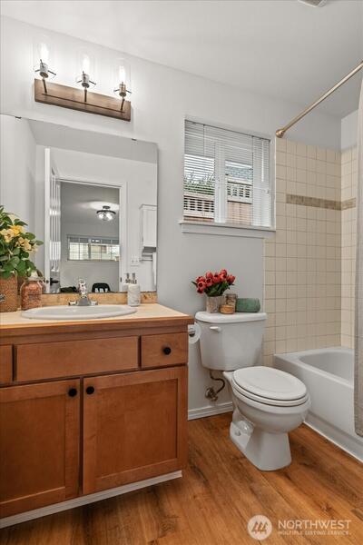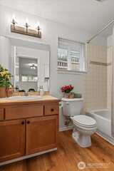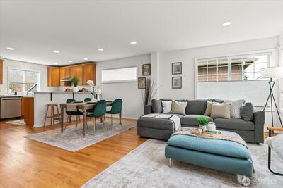 Cozy and bright West Seattle townhome, no HOA dues and move-in ready! This sunlight-filled 3-bed/2.5-bath home, built in 2005, delivers 1650 sq ft of thoughtfully designed, multi-level living. The open main level is anchored by large SW-facing windows that flood the space with natural light throughout the day. A cozy corner fireplace is perfect for Pacific Northwest evenings. The recently refreshed kitchen shines with new countertops, new tile work and new appliances, an ideal space for cooking and entertaining. Fresh interior paint throughout gives the home a clean, modern feel. Upstairs, the primary suite offers an attached bath with skylight, accompanied by a second bedroom with a well-organized walk-in closet. The lower level adds unique flexibility with a full bath and a bonus room that can be used as a third bedroom, home office, or den. Step outside to a private patio with brand new cedar fence, perfect for al fresco dining or quiet relaxation. Convenient off-street parking. Sit