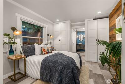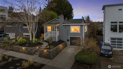 Bohemian chic, Puget sound view home! Positioned on a quiet West Seattle residential street, short distance to Lincoln Park. Cool aesthetic, combining recent updates and reclaimed materials, makes this charming home stand out. You will love the fully remodeled kitchen, featuring an oversized island & French doors that lead you to the gorgeous backyard. The backyard was completed years ago by an architectural landscape designer & is truly a work of art! Other improvements include, updated siding, roof & furnace. An oversized picture window in the living room shows off the spectacular Puget Sound view! The heated lower level, with separate entrance, is ready for your personal finishes. Great ceiling height, 2 large flex spaces & potential to add a bathroom. Don’t miss the covered casita in the backyard that provides a lovely gathering space! One car attached garage & wood burning fireplace, welcome home!