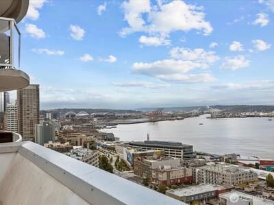 Enjoy breathtaking views of the Sound, mountains and city skyline from this beautiful southwest corner unit. Located in Arbor Place, a premier concrete and steel high-rise, this residence offers resort-style living with exceptional amenities. A 24/7 concierge, pool, sauna, jacuzzi, fitness center, community room, business center, guest suite, designated parking in secured garage and multiple roof top decks! Positioned in one of Belltown's most sought-after buildings, you are just steps away from everything downtown Seattle has to offer. Walk Score of 97!! Seller financing available with 20% down, 5.04% APR. Payment $2,066/month Interest only!