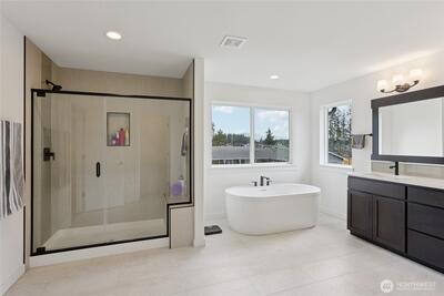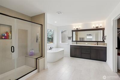 Welcome to your spacious sanctuary in the heart of Spanaway! This impeccably maintained 3,126 sqft home offers luxury finishes and functional living. With 4 generous bedrooms and 2.5 baths, there is room for everyone to spread out and thrive. The main level features an open concept layout designed for entertaining in the Chef's Kitchen that is appointed with a gas range, side-by-side refrigerator and freezer, and huge walk-in pantry. Rounding out the main floor is an additional den, extra storage closets, and half bath for your guests. Large primary upstairs with attached 5-piece bath with soaker tub, walk-in shower, and sizeable walk-in closet. 3 additional bedrooms, main hall bath, laundry, and bonus room. Step outside into your private oasis with a fully fenced backyard with large covered back patio. Tandem 3-car garage provides ample space for vehicles, a workshop, or extra storage. Central Heating and Heat Pump. Close to shopping for the everyday essentials. Truly a suburban retre