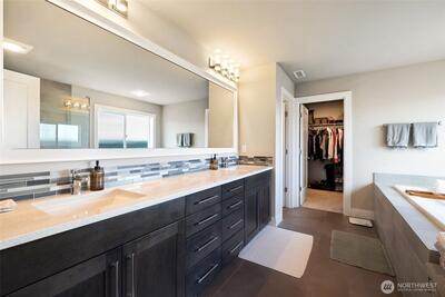 Welcome to Vinterra Highlands! Contemporary 5-bedroom home in a wonderful community near Downtown Woodinville & Wine Country. This DR Horton Emerald Series resale showcases elevated design and higher-end finishes beyond the builder’s traditional line. Sophisticated exterior with modern garage door, crisp architectural lines and standout curb appeal. The open-concept chef’s kitchen features slab granite counters, quality cabinetry, premium stainless appliances including an impressive 60" built-in refrigerator, and an expansive island for gathering. Enjoy seamless indoor-outdoor living with a beautiful entertainment-sized covered deck, plus an upgraded backyard with redesigned outdoor spaces including a serene Zen garden, low-maintenance turf, and expanded patio. The bright and spacious three-level layout offers flexibility and room for everyone, including a versatile lower level with bedroom, bathroom, family room, and storage- perfect for guests or multi-generational living. Upstai