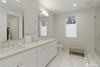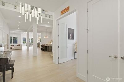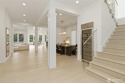 Nestled on a private driveway in a peaceful, tucked-away setting, this home offers exceptional privacy and surprising tranquility—shielded from nearby roadways for a truly serene living experience. This elegant 2019 Clyde Hill Northwest Contemporary by MN Custom Homes is where light, design, and livability converge. Sun-filled great room flows effortlessly to a chef’s kitchen, creating an inviting backdrop for both everyday moments and entertaining. Main-floor guest suite offers flexibility, while an expansive upstairs bonus room adapts to your lifestyle. The serene primary suite features a spa-inspired bath, complemented by three additional bedrooms. Over $300K in upgrades enhance every detail, including custom glass stair railings, an upgraded Ortal fireplace, Hunter Douglas automated shades, and full-home window treatments. Smart home with Green features, hardwood floors upstairs, and professionally landscaped grounds with turf and retaining wall. Located in coveted West Bellevu