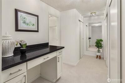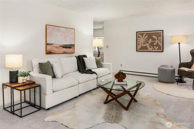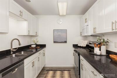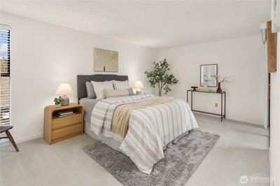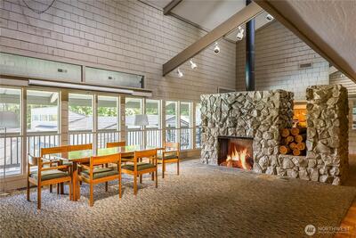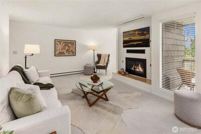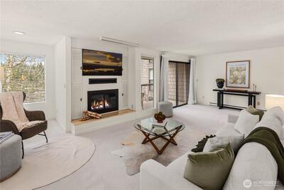 Welcome to the highly sought-after Sixty-01 Village! This bright 3rd floor end-unit condo features 4 private balconies, elevator access, and beautiful lake views from the living room. Freshly painted with new carpet, this home offers an updated kitchen with granite countertops, stainless steel appliances, a spacious living room with wood-burning fireplace, and large windows that bring in abundant natural light. The layout includes 3 spacious bedrooms, providing flexibility for working from home, guests, or hobbies. Additional features include updated bathrooms with granite counters, walk-in closet, storage, unit, and 2 reserved garage parking spaces, plus ample guest parking. Set within 86 acres of beautifully maintained grounds, Sixty-01 Village offers resort style amenities including 4 swimming pools, lakes, fitness center, sauna, tennis, pickleball and racquetball courts, volleyball, clubhouse, BBQ areas, and scenic trails connecting to Microsoft, Marymoor Park, and Bridle Trails Pa
