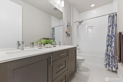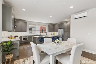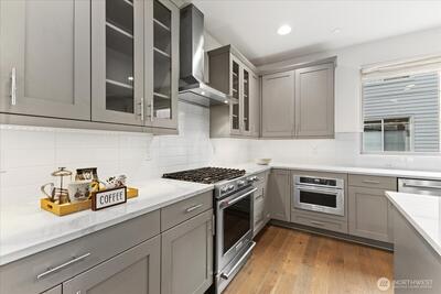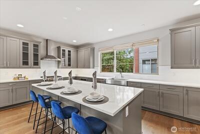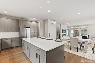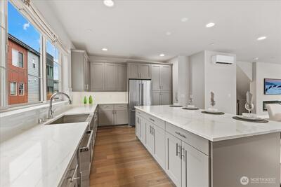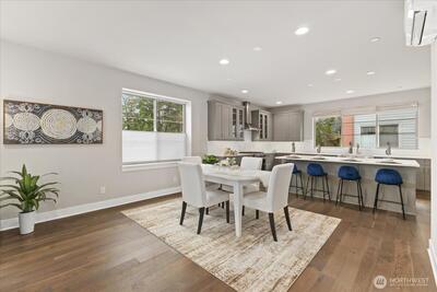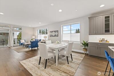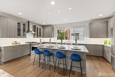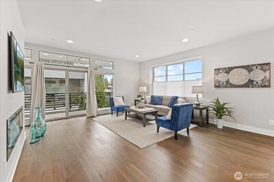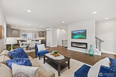 Experience elevated living in this exceptional end-unit 4-bedroom townhome in the sought-after Vareze Community. This light-filled home features an open floorplan with soaring ceilings, hardwood floors on the main level, a cozy fireplace, and an abundance of oversized windows. The modern kitchen blends style and function with sleek quartz surfaces, stainless steel appliances, excellent storage, and an expansive island perfect for entertaining. A private ensuite bedroom on the lower level offers ideal guest or multi-generational living. Upstairs, the remaining bedrooms include a showstopping primary suite with extra-tall ceilings, generous space, and a beautifully updated bathroom with elegant fixtures and abundant natural light. Home is smart home enabled with Lutron light switches, Ring doorbell cameras, & MyQ garage opener. Additional upgrades include custom window shades, fresh interior paint, and a 2-car garage with EV charging. Located within the coveted Lake Washington School Dis