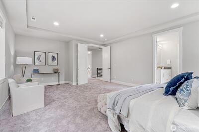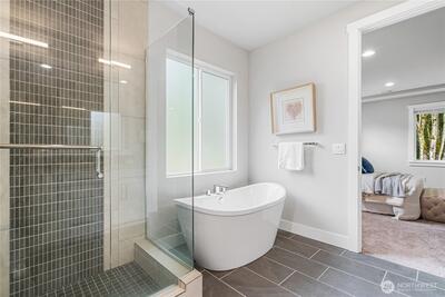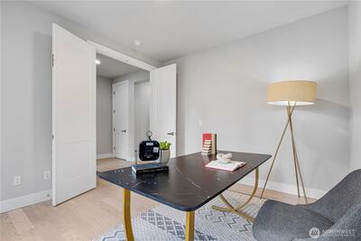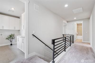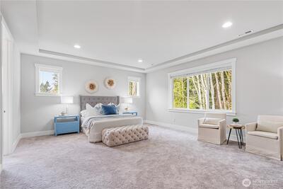 Experience modern elegance in this stunning south-facing DR Horton home, built in 2021 and ideally situated in Kirkland’s tranquil Juanita neighborhood. Set on a nearly 1/4-acre lot, this 4-bedroom, 2.5-bath residence showcases an open and airy design with soaring 9-ft ceilings on both levels. A generous main-floor office offers flexibility for guests or a potential 5th bedroom. Refined finishes include hardwood floors, quartz countertops, stainless steel appliances, and a spa-inspired primary suite with a soaking tub. Enjoy premium comforts such as A/C, a tankless water heater, and a private low-maintenance backyard designed for effortless living. Quiet street, no HOA, and close to parks and scenic trails.