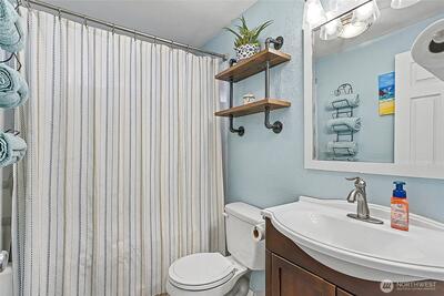 Well-maintained and thoughtfully updated 3-bedroom home on a large, fully fenced lot with ample parking, ideally located near Capital City Golf Course and just minutes to JBLM, shopping, dining, and everyday conveniences. The open main level features a spacious kitchen with new quartz countertops and new appliances, along with two separate living areas, a cozy gas fireplace with built-ins, and a full bathroom. Upstairs offers a primary bedroom with its own bathroom plus two additional bedrooms. Recent improvements include a new heat pump for efficient year-round heating and cooling, new fencing, and a roof replaced in 2020.