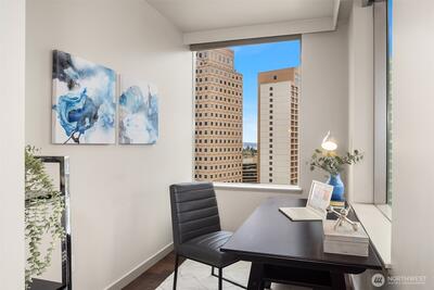 Perched on the 16th floor of Washington Square Tower 1, this home is a standout blend of prime location and modern elegance. Floor-to-ceiling windows bathe the living spaces in natural light, creating a bright and welcoming atmosphere throughout. Cozy up by the gas fireplace or host memorable gatherings in the open-concept living and dining area—perfect for both relaxing and entertaining.The kitchen is equipped with brand-new stainless steel appliances, including a range/oven, microwave, and refrigerator, ready for your culinary adventures. Step out onto your private balcony to enjoy summer breezes or the soothing sound of spring rain—your own outdoor retreat in the city.Convenience is unmatched with two reserved parking spaces near the elevators, a spacious storage locker, six guest parking spots in Tower Two’s garage, plus ample street parking. Located just steps from Bellevue Square shopping, fine dining, and entertainment, and minutes from freeways, hospitals, Kelsey Creek fa
