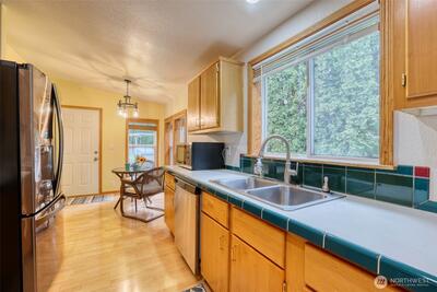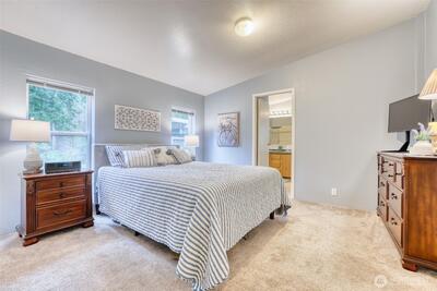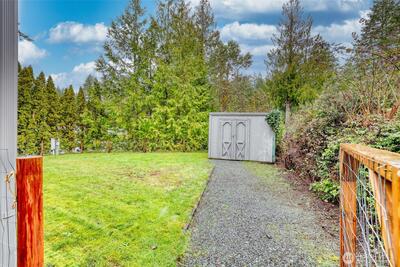 Beautifully maintained home in Peninsula Woods Mobile Home Park! Ideally situated on a spacious corner lot with a private large yard including fencing and a storage shed. This home is a 3 bedroom 2 bath 1323 sq/ft and has been thoughtfully updated with a newer roof, well maintained flooring/paint offering true move-in-ready convenience. Inside, you'll find vaulted ceilings and abundant natural light that create an open, airy feel throughout. The spacious kitchen features stainless steel appliances, ample cabinet storage, a cozy breakfast nook, and an additional dining area--perfect for both everyday living and entertaining. The generously sized primary suite offers a relaxing retreat, complete with a five-piece bath. Conveniently located just minutes from shopping, dining and all the amenities of Downtown Gig Harbor. Space Rent is $977/month and includes water and septic.