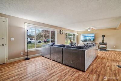 Spacious 4-bedroom home with an excellent floor plan! Upon entry, you're welcomed by large sunny windows, laminate flooring throughout the main, & a cozy gas stove. Open-concept layout is perfect for entertaining, w/seamless access from the kitchen to the dining and main living areas. The kitchen features granite countertops, abundant cabinetry, stainless steel appliances, recessed lighting & skylight brining in natural light. From the dining room, slider leads to a fully fenced backyard w/generous deck—ideal for gardening, relaxing, or setting up a kids’ pool. All bedrooms are well-sized, w/large rooms on the upper level. Additional highlights include A/C with heat pump, RV parking, & storage shed. Conveniently located w/easy access to Highways 169, 405, and 167 - just minutes from Valley Medical Center. Fantastic location to enjoy shopping, dining & more!