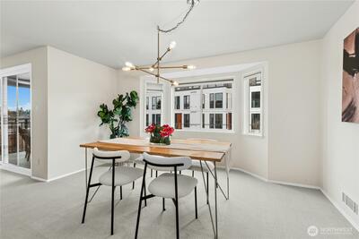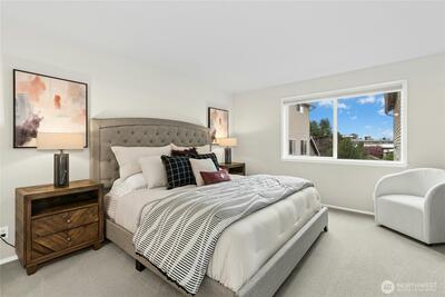 Welcome to Phinney Ridge Condos! This light-filled end-unit offers 2 bedrooms, 1.75 baths, and 1,048 sqft of thoughtfully refreshed living space, featuring new carpet, fresh interior paint, and updated bathroom flooring. The recently updated kitchen showcases quartz countertops, stainless steel appliances, and newer hardware, flowing seamlessly into the oversized dining area and inviting living room with a cozy fireplace. The spacious primary suite includes an en-suite bath and generous storage. Step outside to the covered balcony, perfect for year-round enjoyment, along with the convenience of secured, covered parking. A well-managed HOA covers water, sewer, and garbage, with major building improvements already completed, including siding, roof, windows, and elevator. Ideally located, you’ll enjoy the best of Greenwood living just one block from Trader Joe’s, neighborhood parks, local shops, and dining, with easy access to transit, Green Lake, and downtown Seattle. Pre-inspected f