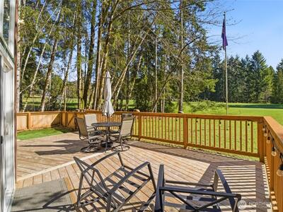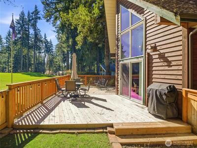 Tucked along the 3rd green of the Lake Cushman Golf Course, this peaceful retreat offers the perfect blend of relaxation and recreation, with a thoughtfully positioned setting that’s protected from stray golf balls while still capturing beautiful fairway views. Inside, the open-concept great room welcomes you with vaulted ceilings and a cozy propane fireplace, creating an inviting space to gather year-round. Expansive picture windows flood the home with natural light and frame the golf course backdrop. The kitchen flows seamlessly into the main living area, making entertaining effortless. The primary bedroom is conveniently located on the main floor for easy living. Enjoy the practicality of two full RV hookups, ideal for guests or additional flexibility. Two storage sheds provide plenty of room for tools, gear, or golf carts, and the low-maintenance yard means more time enjoying the lifestyle and less time on upkeep. As part of the Lake Cushman community, you’ll also have access t