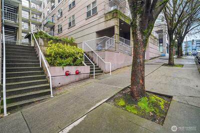 Wonderfully maintained downtown Seattle condo offering comfort, convenience, and inviting style. The bright kitchen features sleek stainless steel appliances, ample cabinetry, and a functional layout ideal for everyday living or entertaining. A private east-facing patio provides a peaceful, shaded retreat—perfect for morning coffee, unwinding in the fresh air, or sharpening your green thumb with container plants. The bathroom includes a freshly refinished bathtub that looks and feels brand new, adding a crisp, updated touch. Residents enjoy access to desirable amenities including a well-equipped gym and secure bike storage, supporting an active urban lifestyle. This home boasts an exceptional 98 walk score, with easy access to multiple grocery stores, local restaurants, cafés, and nightlife options just moments away. Public transportation is conveniently nearby, simplifying commutes and city exploration. A secured parking space in the common garage adds extra ease and peace of mind.