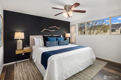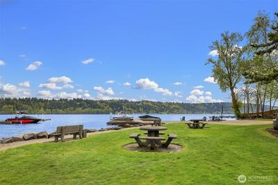 Short Sale Opportunity! Unbeatable value for a beach home on Lake Sammamish. Open and bright 2-bedroom, 1-bath corner unit with lovely lake views and a spacious deck facing the water. Stylish updates include a fully renovated bathroom with heated ceramic tile, all new flooring, and fresh paint. Situated in Lakewood Shores, a peaceful resort-style community featuring a private beach, volleyball court, fire pit, and private boat launch. Boat moorage slips and kayak storage available for a nominal yearly fee. Dedicated parking spot in front of unit. Just minutes to SR-520, Microsoft, light rail, Idylwood Beach Park, and Marymoor Park. A serene life close to everything—welcome Redmond's best-kept secret.