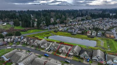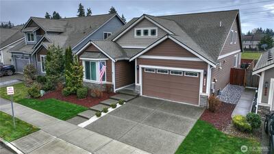 WELCOME HOME! This exceptionally well-maintained 2,457 sqft home features 3 bedrooms, 3 baths, plus an office with window and closet plus a large den-offering potential for a 4th bedroom. Vaulted ceilings and light-filled living spaces create an open, inviting feel throughout, along with ample storage. Inside you’ll find new paint, trim, engineered hardwood flooring, a new dryer, and all new kitchen appliances (all appliances to stay). Additional features include soft-close cabinetry, a tankless water heater, and a heat pump with A/C for year-round comfort and efficiency. A standout feature is the brand new $40K solar system that will be FULLY PAID OFF by the seller at closing, allowing the next owner to enjoy significantly reduced electricity costs with no solar loan or lease to assume. With Puget Sound Energy increasing residential electricity rates by 12% in January 2026, owning a home with fully paid-off solar provides meaningful long-term savings and added value. Step outside