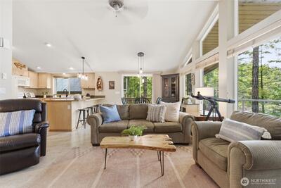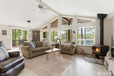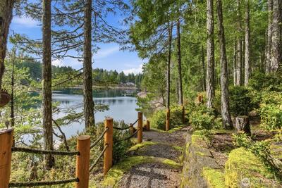 Escape to your own peaceful Northwest retreat. This active Airbnb sits on 2 lots on a private spring-fed lake stocked annually with trout and also offers exclusive access to the Hood Canal for year-round outdoor fun. Then cozy up next to the wood burning fireplace. This charming home is surrounded by lush forest and serene natural beauty. Storybook moss-lined terraced stone pathways wind through the forested landscape, leading you down to your private lakefront, creating a magical setting for fishing, relaxing, and enjoying the outdoors. Rare opportunity to own a tranquil getaway with both lake and canal access in one unique property.