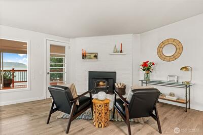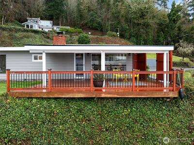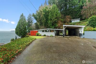 Views, views, views, what could be better than breathtaking East Gig Harbor vistas? Updated single-level living w/ views of Colvos Passage, Mt. Rainier, Port of Tacoma, & Vashon Island. Minutes from downtown Gig Harbor, waterfront dining, & local shops & Gig Harbor North w/ Costco, YMCA, & new City Park w/pickleball courts & turf fields. MCM design, easy daily living & entertaining. Open-concept layout, filled w/ natural light & oversized window to frame the views. The kitchen features updated stainless steel appliances & island for gathering, while the living room is anchored by a cozy wood-burning fireplace. Picture slow mornings with coffee on the deck as eagles soar overhead, & evenings spent watching the ferry glide across the Sound, it’s peaceful, quiet, and feels a world away. A spacious mudroom with front-loading washer/dryer & extra storage. Oversized carport w/ room for additional storage, boat, or RV parking. This is your front-row seat to it all. Host, relax, and take in