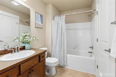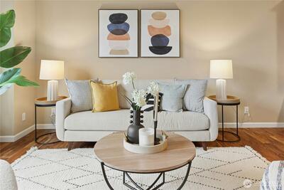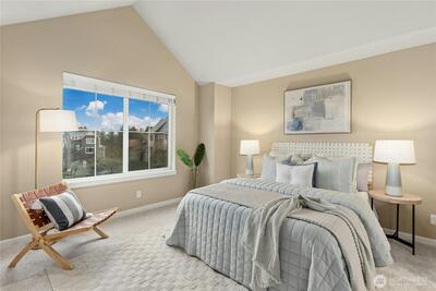 Impeccable 3-bedroom West Highlands Park townhome, located on the park! This updated and charming townhome within the coveted West Highlands/WestRidge neighborhoods offers convenience and sophisticated lifestyle. Checkmarking all the boxes this home has a bright and inviting ambience. The front entry welcomes from a park-side patio area with new exterior and interior paint along with brand-new carpet throughout. The eat-in kitchen shines with refinished cabinets and sleek stainless newer appliances, large kitchen island and a 1-basin sink! An open concept at main with beautiful hardwood flooring includes park views, gas fireplace and deck balcony off dining. Bedroom levels offer a nice primary suite facing the park-setting with Mt. Baker views, additional bedroom or office, plus a 4th level bedroom, and a separate full bath. Add a spacious 2-car garage with overhead storage hangers and an updated belt driven garage door opener and you have it all! All appliances and freezer sta