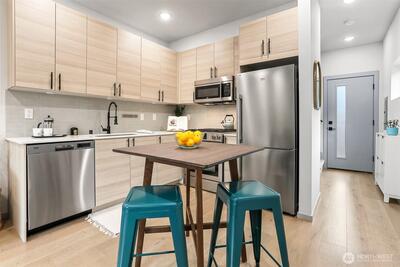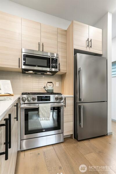 Located in the heart of Loyal Heights, this well-maintained townhome offers comfort, flexibility, and an ideal neighborhood setting. The thoughtful floor plan features living, dining, and kitchen spaces on the main level, with light-filled bedrooms on the second and third levels, each with its own full en suite bath. The layout is well suited for a variety of living or work-from-home arrangements. Lovingly maintained by its owners since it was built in 2023, this home is an exceptional value in Northwest Seattle. Natural light, a sunny yard, and an off-alley parking spot add to its appeal. Ideally located just blocks from Loyal Heights favorites including Larsen’s Bakery, Cafe Munir, and Beast & Cleaver. Welcome to your new home!