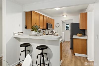Welcome to your retreat in the heart of Juanita! Located in the desirable Kirkland Springs community, this charming home offers comfort, convenience, and low-maintenance living. With 980 sq ft, the home features 2 spacious bedrooms and 2 bathrooms with a bright, open-concept layout designed for everyday living and entertaining.The kitchen includes new stainless steel appliances and flows seamlessly into the dining and living areas. Enjoy the added convenience of an in-unit washer and dryer. Step outside to the private back patio which features your own private storage unit, and you can relax next to the peaceful community water feature—perfect for unwinding after a long day.This property also offers **NO RENTAL CAP**, providing excellent flexibility for homeowners or investors seeking future income potential.Ideally located near Totem Lake Village, you’ll enjoy easy access to shopping, dining, and entertainment, including movies and popular restaurants. Commuting is a breeze with c