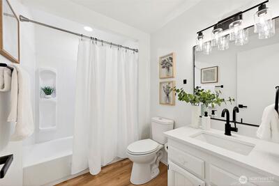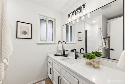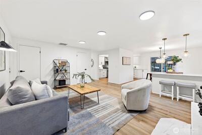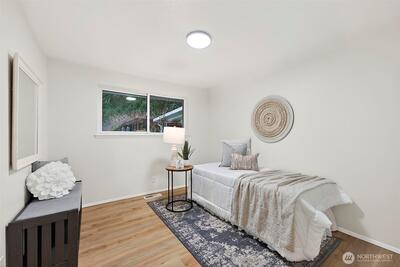 Remodeled and ready to go, this 4 bedroom, 2.5 bathroom rambler is tucked into a quiet cul-de-sac in East Olympia on a spacious 11,700 sq ft lot. No HOA, no stairs, just a solid single-level home that's been freshly updated throughout, new flooring, paint, lighting fixtures, beautifully refreshed bathrooms, and a new gas range. The layout is easy to live in, with a cozy fireplace anchoring the main living space, gas forced-air heat, an attached garage, and generous storage throughout. Everything you need is right here on one level, which makes this a natural fit whether you're buying your first home, downsizing, or looking to age in place comfortably. Out back, a large covered area gives you a functional outdoor space you'll actually use year-round. The fully fenced yard is flat, level, and sectioned off for pets, play, chickens, or a garden, with real room to make it your own over time. East Olympia is a great pocket of Thurston County, close to shopping, dining, and commuter route
