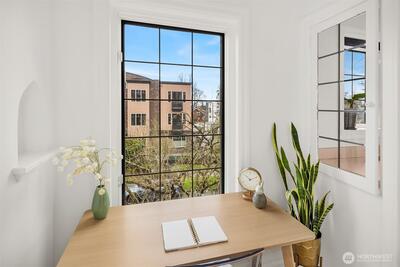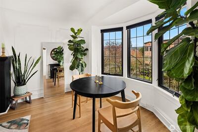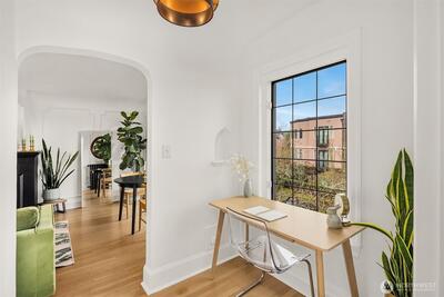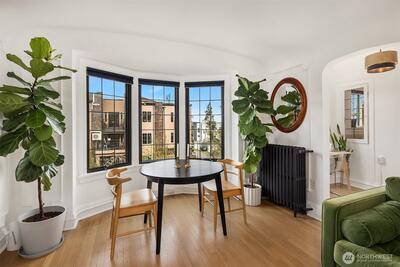Quietly tucked away in the iconic Mayfair Manor, this south facing, freshly updated condo is a rare standout! Blending Art Deco character with modern style, the updated kitchen and bathroom pair beautifully with original architectural details, capturing the best of Seattle’s urban charm. Sunlight pours through bay windows, framing city views and enhancing a layout that feels both functional and cozy. With space for a home office and a true one bedroom that comfortably fits a queen sized bed, this unit offers flexibility not often found in the building. All this, plus a walk score of 94, puts #303 right in the heart of it all!