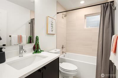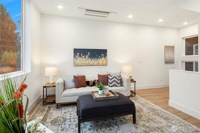 Welcome to this new construction home from Insignia Development in a fantastic Northwest Seattle location. Spacious entryway leads to first floor bedroom or home office and full guest bath. Second level has open concept living room and kitchen for ease of entertaining. Top floor primary, with spacious ensuite bath and walk-in closet, offers complete privacy from the rest of the home. Enjoy morning coffee or watch the sun go down on your rooftop deck with territorial views, giving you low-maintenance access to the outdoors. Greenwood and Crown Hill neighborhoods with ample options for dining & night life, plus Met Market blocks away. Attached storage garage for all of your gear, and EV-ready off-street parking included.