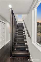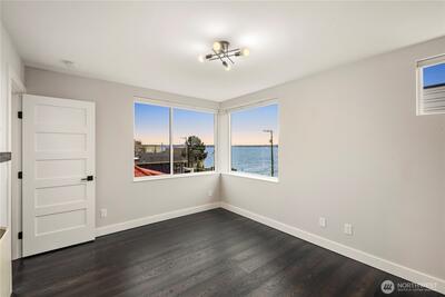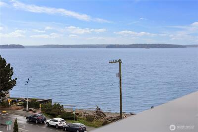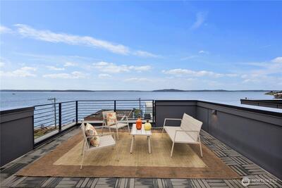 Experience iconic West Seattle waterfront living at its finest. This beautiful Beach Drive home offers unobstructed Puget Sound and Olympic Mountain views. Expansive windows throughout the house with custom blinds and a large rooftop deck, the seamless indoor–outdoor flow creates a front row seat to sunsets, passing ferries, and wildlife. Thoughtfully designed, the residence features 4 bedrooms, 3 bathrooms, a spacious utility room, and air conditioning on three levels. The massive kitchen showcases designer finishes, Samsung appliances, custom white shaker cabinetry, a built-in wine fridge, and generous prep and storage space. The light filled living room centers around a large modern fireplace, creating an inviting space for gatherings. Retreat to a luxe primary suite with two walk-in closets, dual vanity, heated bathroom floors, and a large two piece rain shower. Easy garage parking with storage. Enjoy a low maintenance yard, off street parking, and direct access to waterfront str