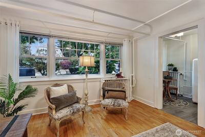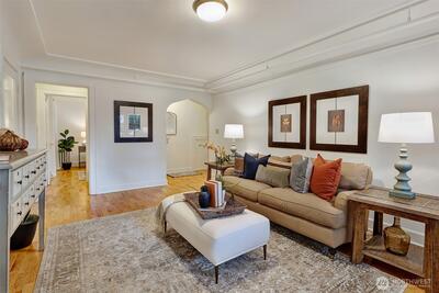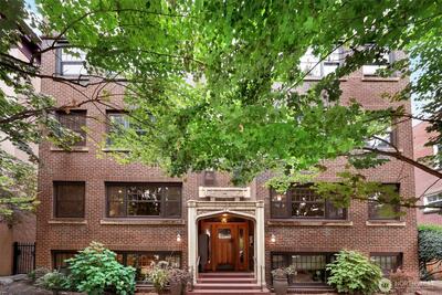 Fall in love with this vintage charmer in North Capitol Hill’s beloved Rowan building, a charming 1927 brick dame surrounded by leafy, quiet streets & timeless character. This 1-bedroom condo blends classic details like hardwood floors, vintage tile, coved ceilings, and arched doorways with modern comforts including in-unit washer/dryer in large private utility room, countertop dishwasher, bldg new roof and windows in 2025, updated tuck pointing, and affordable HOA dues for owners. Enjoy an extra storage room, secure bike storage, and even a community pea patch to garden in! Only a few blocks to Volunteer Park, SAAM, & The Conservatory, and just steps to great cafes, shops, restaurants & transit in one of Seattle’s most enchanting, walkable, and central neighborhoods. Welcome to the old-world historic charm of North Capitol Hill.