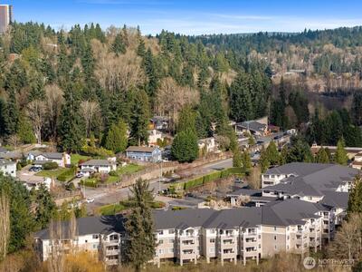 Exceptional SE corner unit overlooking private wooded greenbelt. Quiet setting with covered deck for year-round use. Functional layout features 2 bedrooms, each with its own ensuite bathroom, offering ideal separation for guests, roommates, or flexible living. Updated throughout with new interior paint, new kitchen sink and garbage disposal, freshly painted kitchen cabinets, and freshly cleaned carpet. Kitchen features newer dishwasher, range, and refrigerator. Gas fireplace and enclosed washer/dryer included. Secure building with lobby entry, assigned parking, and storage. Community amenities include clubhouse with kitchen and fireplace, fitness center, business center, seasonal heated pool, and hot tub. 2 Parking Spaces Convenient access to shopping, services, transit, and major commute routes. No special assessments.