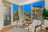 Stunning 18th floor South facing jewel box. Luxe lock and leave lifestyle at the iconic Escala, near 1000 sqft-over sized 1bd,1.5 bath plus 120 sqft balcony-accommodates bbq and outdoor dining. Unwind with the evening glow of city lights,in this sophisticated & private urban dwelling. Perfectly perched above the city, 1bds in Escala only go to 19th floor, so 18th is rare to come to market! Enjoy wide open city views that sparkle at night, excite & invite by day. Chefs kitchen, gas cooking, abundant storage, solid wood Italian Pedini soft close cabinets. Stay cool over the summer with A/C. Custom built in's off kitchen and in the over sized primary- perfect for home office. Floor-to-ceiling windows bring in natural light and with incredible city views-celebrate 4th Ave's iconic architecture: the tallest skyscrapers & the most charming historic landmark. See & feel the heartbeat of the city. Experience unrivaled service, exclusive access to two floors of amenities featuring 120-guest lo