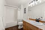Tucked in the middle of a cul-de-sac, this refreshed home offers privacy while remaining close to shopping, dining, and everyday conveniences. Spacious formal living and dining areas with new carpet throughout welcome you inside and flow into the open kitchen and great room. The kitchen features black stainless steel appliances, new refrigerator, walk-in pantry, and an eat-in island with added storage and workspace. The great room includes a gas fireplace, additional lighting, and a sliding door to the private backyard that has been thatched and seeded with decorative paver patio, hot tub and retaining wall —ideal for relaxing or entertaining. The main floor also offers a designated laundry area and powder room. Upstairs features four bedrooms plus a versatile bonus room, all with new carpet, providing flexibility for a home office, media room, or additional living space. The primary suite offers a walk-in closet and a five-piece bath with soaking tub and separate shower w/dual showe