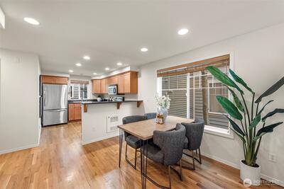 Well-located 3-bedroom townhome with an attached garage in a convenient North Seattle location. Close to Northgate, major transit options, and the future light rail, with easy access to I-5, downtown Seattle, and the University of Washington.This corner unit gets great natural light and offers a comfortable, easy-to-live-in layout. The main living area has a nice open feel, making it great for both everyday living and having friends over. Recent updates include fresh interior paint and new flooring, so it’s truly move-in ready.Upstairs, the primary suite features vaulted ceilings with skylights, a private bathroom, and a walk-in closet. The additional bedrooms work well for guests, a home office, or whatever fits your needs.The home also features a fully fenced patio with terraced garden space—perfect for relaxing, gardening, or setting up a cozy outdoor seating area. A great combination of location, natural light, and practical living space.