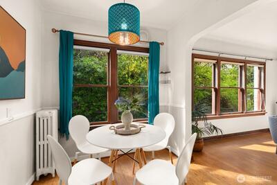This spacious one-bedroom unit overlooks lovely garden and green space. Unit highlights include oak floors, picture rails, arched doorways, coved ceilings & hexagon tiling. Updates include brand new stainless appliances, fresh paint, and an updated bathroom. All updates have been mindfully done to maintain period details and charm. This well-run co-op building allows for urban living and community feel. HOA fee covers property taxes, W/S/G, and heating. Walking distance to both Queen Anne and South Lake Union allows easy access to shopping, restaurants and retail.