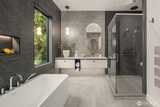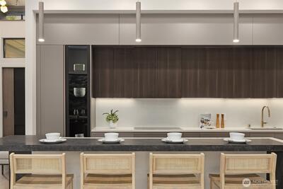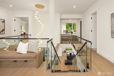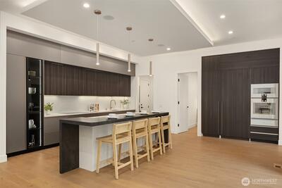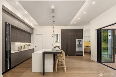Everything on your dream list presents by luxury builder AART homes. Conceived as the builder's personal residence and designed by the Diagonal D Architects, this home is a rare union of inspired design and flawless function. A custom pivot door welcomes you into a residence that immediately impresses — a sculptural floating staircase with wood treads and glass handrail draws the eye upward, while the expansive great room opens seamlessly to a private backyard. Two kitchens define the culinary experience. The primary kitchen showcases rich designer walnut cabinetry, wide-plank white oak floors, honed Caesar stone countertops, and a full suite of Gaggenau appliances — including a 60" paneled refrigerator and induction cooktop. The dedicated spice kitchen features a Wolf gas cooktop with hood. The thoughtfully designed main floor includes a bedroom and private office. Upstairs, 4 generous bedrooms and a light-filled flex room offer space for every need. The primary suite is a true r