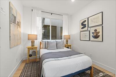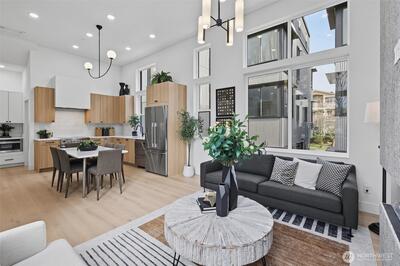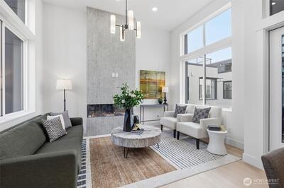 Harbor 26 places you front and center to Lake Union living in the heart of Eastlake. This thoughtfully designed 2 bed, 2 bath townhome offers 998 sqft of modern comfort, blending clean architecture with a bright, open layout that lives larger than its footprint. Natural light fills the main living spaces, highlighting sleek finishes and a contemporary kitchen built for both daily living and entertaining. Upstairs, a private rooftop deck delivers sweeping views of Lake Union and the Seattle skyline—ideal for sunset unwinding or hosting under the city lights. Enjoy the convenience of secured garage parking within this gated 26-home community by DEP Homes Eastlake, a trusted local builder known for quality craftsmanship and timeless design. Modern. Efficient. Unmistakably Eastlake.