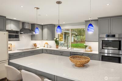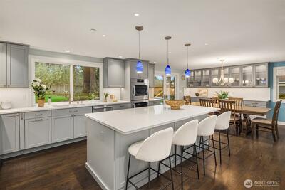 Thoughtfully reimagined Northwest living in a private cul-de-sac setting on sought-after Education Hill. This beautifully updated residence offers a spacious great room design with seamless indoor-outdoor flow, framed by landscaped grounds. An expansive deck, covered terrace and hot tub create ideal spaces for year-round gatherings, while the fully fenced backyard backs to a scenic ridgeline trail with views of the Sammamish Valley and Bear Creek, offering access to miles of connected paths. Inside, sweeping hardwoods introduce an open-concept layout designed for today’s living. The kitchen showcases clean, contemporary styling with modern cabinetry, slab countertops and stainless steel appliances, flowing effortlessly into the main living and dining areas. A versatile recreation room with custom media and bookcase built-ins provides additional space for relaxation or entertaining, while a spacious laundry and mudroom enhances everyday functionality. Upstairs, five generously sized b