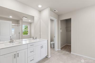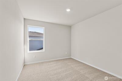 Welcome to the Cambridge by D.R. Horton at Rainier Ridge, where thoughtful design meets everyday functionality. The open-concept main floor brings the kitchen, dining area, and great room together in a layout that works just as well for a quiet night in as it does for entertaining. Quartz countertops, a walk-in pantry, and Whirlpool appliances make the kitchen a space you will actually enjoy, and a powder bath rounds out the main level nicely. Estimated completion in June, just in time to settle in and enjoy summer. Upstairs you will find four spacious bedrooms plus a versatile bonus room above the 2-car garage, perfect as a 5th bedroom, home office, or media room. The primary suite is a true retreat with a walk-in closet, double vanity, and large shower. Smart Home technology and A/C come standard. Energy-efficient features include an electric heat pump, low-E windows, LED lighting throughout, and EV pre-wiring for easy charger installation. Conveniently located near South Hill Mall,