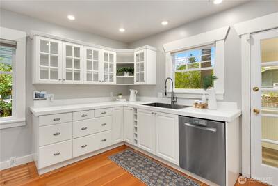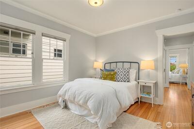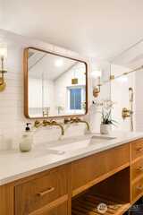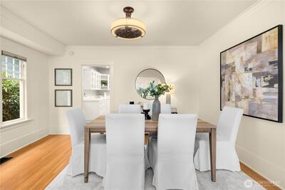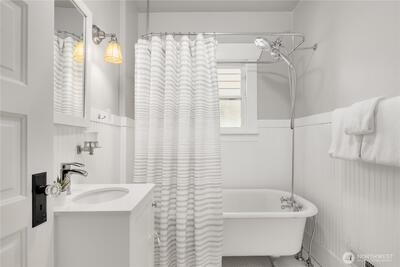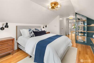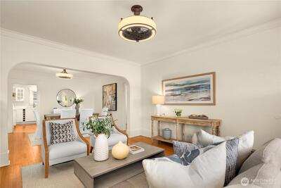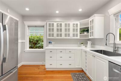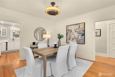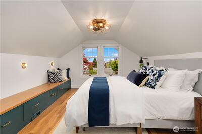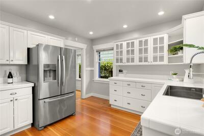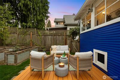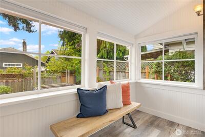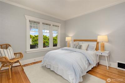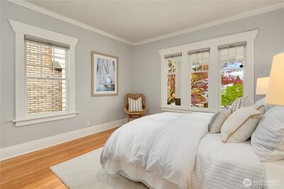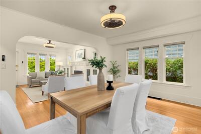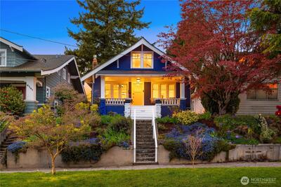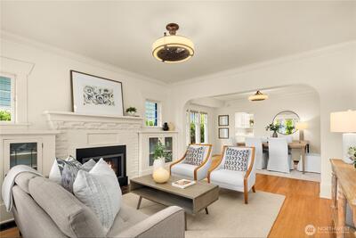Perfectly positioned between Wallingford and Tangletown, this Craftsman offers a functional layout with a mix of original character and modern updates. Hardwood floors, original built-ins, and a gas fireplace anchor the main living space, with natural light throughout. The layout flows easily between the living, dining, and kitchen areas, making it practical for both daily living and hosting. Upstairs, the primary suite—featured in multiple design magazines—includes western-facing views of the Cascade Mountains and surrounding cityscape. The primary bathroom is simply perfect. The lower level provides additional space with room to create what you need—guest bedroom, home office, recreation room, pottery studio, or creative workspace. It’s a flexible area with a variety of potential uses. Recent updates include a new roof and efficient dual-fuel HVAC system (A/C). The home has been pre-inspected and sewer scoped for buyer confidence. The beautifully landscaped backyard is fully
