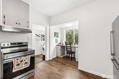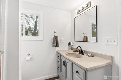 Welcome to this beautifully reimagined 1901 Craftsman home in Olympia, thoughtfully remodeled in 2023 to combine historic charm with modern comfort. This 960 sq ft home offers 3 bedrooms and 1.5 bathrooms, thanks to a smartly redesigned floor plan that added an additional bedroom and a convenient half bath. Inside, you’ll find a bright and refreshed interior featuring newer walls, windows, updated electrical wiring and outlets, modern lighting, and stylish finishes throughout. The kitchen has been updated, and the bathrooms have been tastefully remodeled for everyday comfort. Durable waterproof vinyl plank flooring runs throughout the home, creating a cohesive and low-maintenance living space. Additional upgrades include a tankless water heater for efficient hot water, a ductless mini-split for climate control, and an enclosed porch that adds extra versatility and charm. Situated on a spacious, level lot in the highly sought-after Olympia School District, this home offers both charac