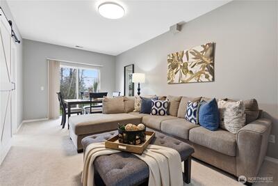 Tucked into a peaceful Cougar Mountain setting, this beautifully updated multi-level townhome offers the perfect blend of space, light, and privacy. Soaring ceilings and skylights fill the main living area with natural light, complemented by a cozy gas fireplace and access to a quiet patio overlooking greenery.The refreshed kitchen features a functional breakfast bar and a bright dining area ideal for everyday living and entertaining. Upstairs, the spacious primary suite includes a walk-in closet and a spa-like 5-piece bath, along with two additional bedrooms, a full bath, and convenient laundry.The lower level adds flexibility with a generous family room, an extra bedroom, and a dedicated office—perfect for guests or remote work—plus direct access to a second patio backing to lush greenbelt.Complete with an oversized 2-car garage, well-run HOA, and located in the highly sought-after Issaquah School District. Enjoy easy access to nearby parks, trails, shopping, and major commuter r