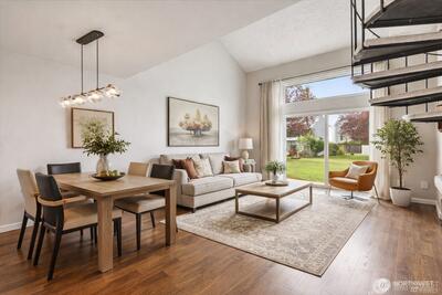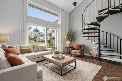 Don’t miss this beautiful condo in the sought-after Kent Hill Townhomes—offering one of the best values in the community! This 1-bedroom, 1.5-bath unit features stylish updates, including an updated kitchen and bathrooms.The spacious loft-style primary suite includes a nicely updated bath, while fresh interior paint gives the home a bright and inviting feel. A striking circular staircase adds character and elegance to the living space, and a cozy nook nearby is perfect for a home office.Enjoy your private patio with views of the well-maintained, landscaped grounds. Conveniently located just minutes from shopping, Kent Station, major freeways, and public transit.Community amenities include an outdoor pool, clubhouse, and tennis court.